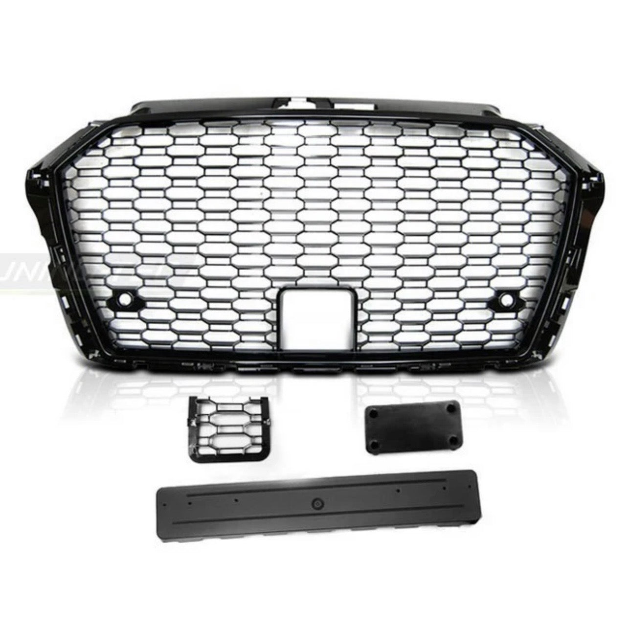 Griglia a nido d'ape in stile RS design, nella variante con bordo nero. Disponibile variante con o senza foro per il radar ACC (adaptive Cruise control). Calandra per dare un tocco più sportivo ed aggressivo alla vostra auto.