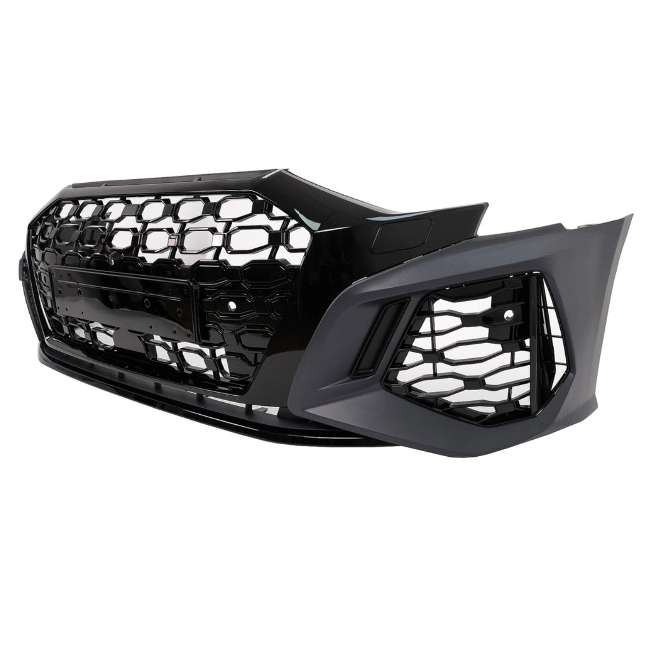 Kit paraurti anteriore in stile RS design, in plastica di alta qualità. Il kit include anche la griglia centrale a nido d'ape, le griglie laterali esterne, baffo inferiore, prese d'aria e accessori vari. Tappi lava fari inclusi.